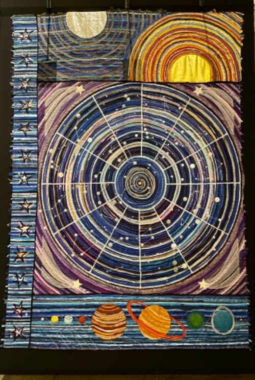 ‘Threads through Creation’ is a spectacular sequence of twelve huge textile panels by textile artist Jacqui Parkinson. It’s an exuberant retelling of the creation story in the book of Genesis, a retelling which many visitors find both moving and breath-taking. The artist re-imagines this ancient story in a vibrant combination of layers of silk, hand-dyed materials, metallic leathers and gold .....